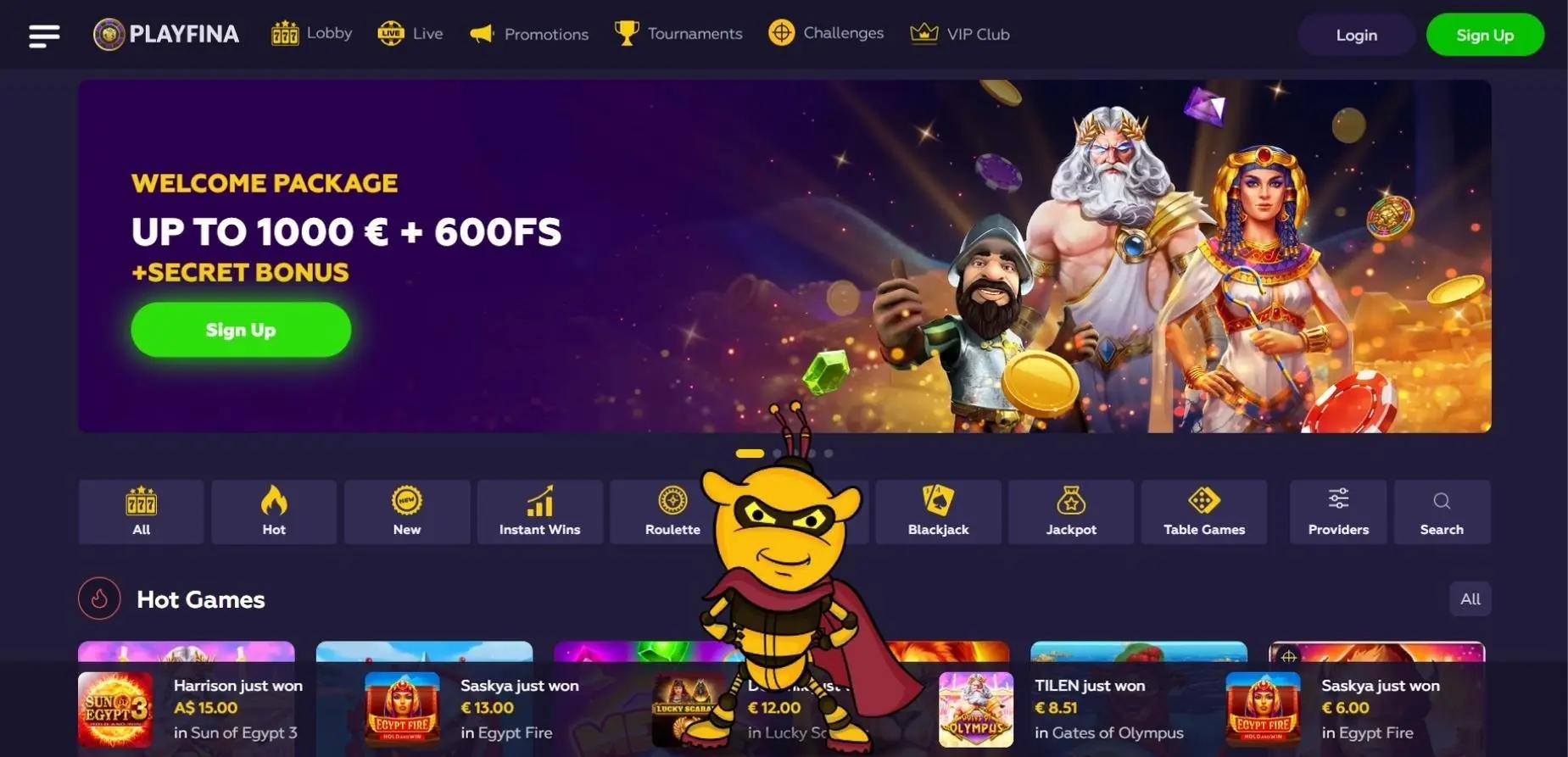 These special codes offer you the chance to enjoy Playfina's exciting games without having to make a deposit. Simply enter the code during the registration process or at the cashier, and the bonus will be credited to your account instantly.